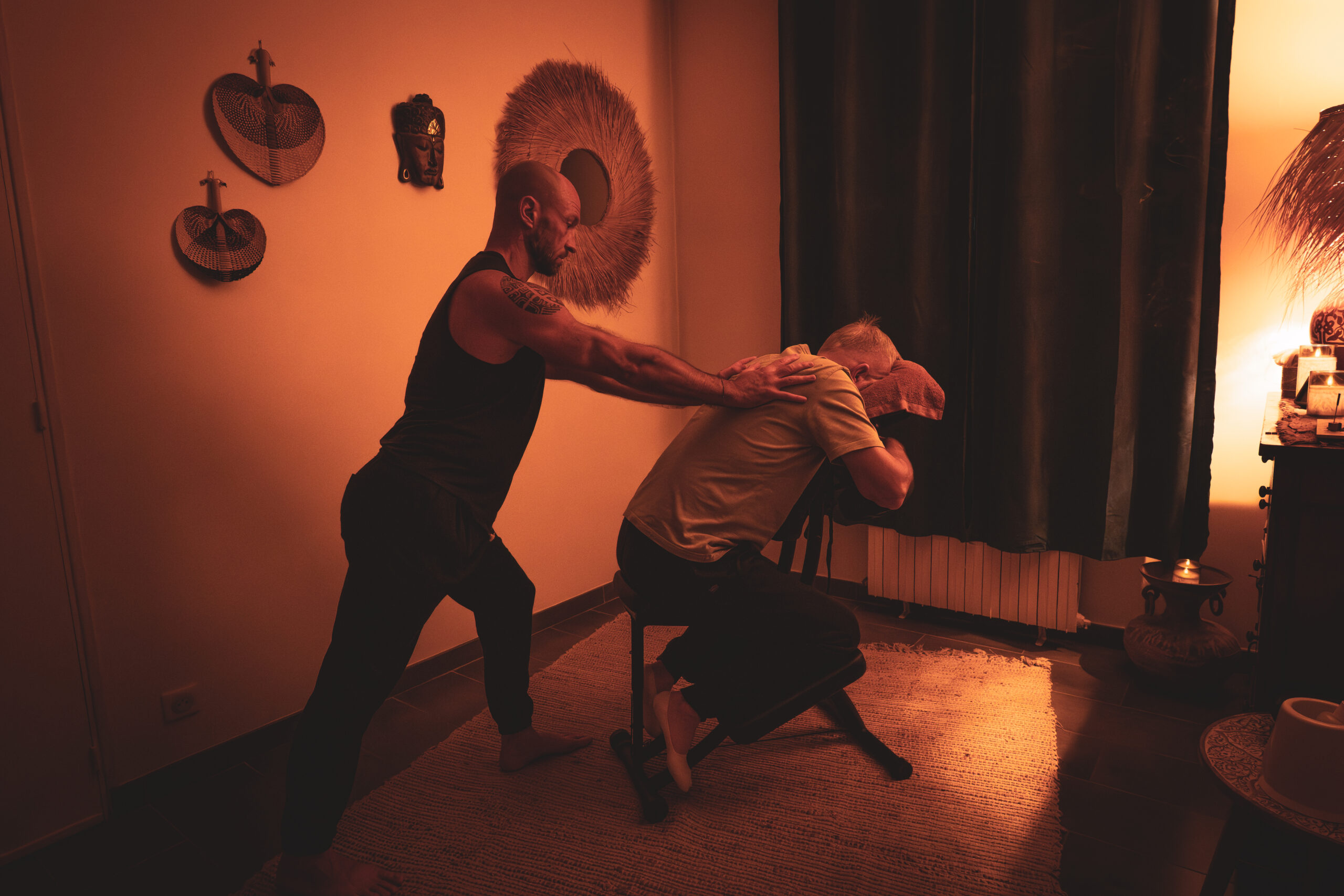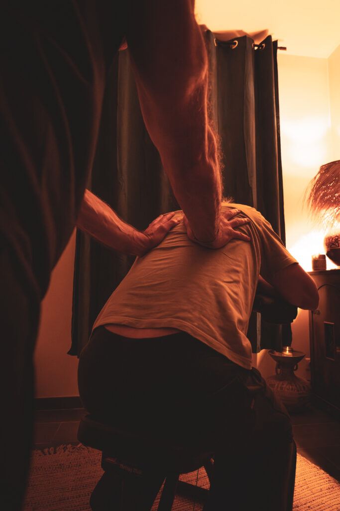 Le Amma assis procure à la fois une profonde détente corporelle et une véritable dynamisation de la personne.
